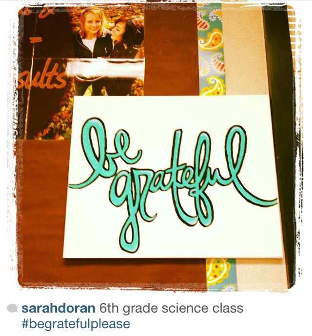 A while back my sister asked me to make a big “be grateful” for her 6th grade math & science classroom. So I bought my go-to paint colors, some paintbrushes and two canvas thingys, and happily created another version of the message.