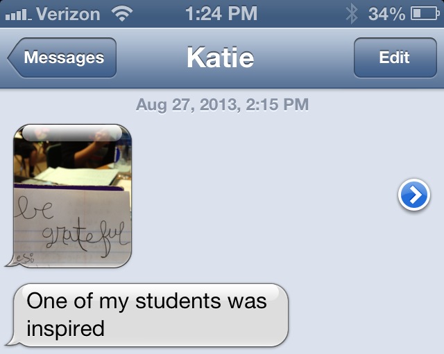 It makes me really happy when anyone takes on this message, but especially happy when it’s someone younger. If “be grateful” is the only message that kids hear from me, I won’t have to say another word.