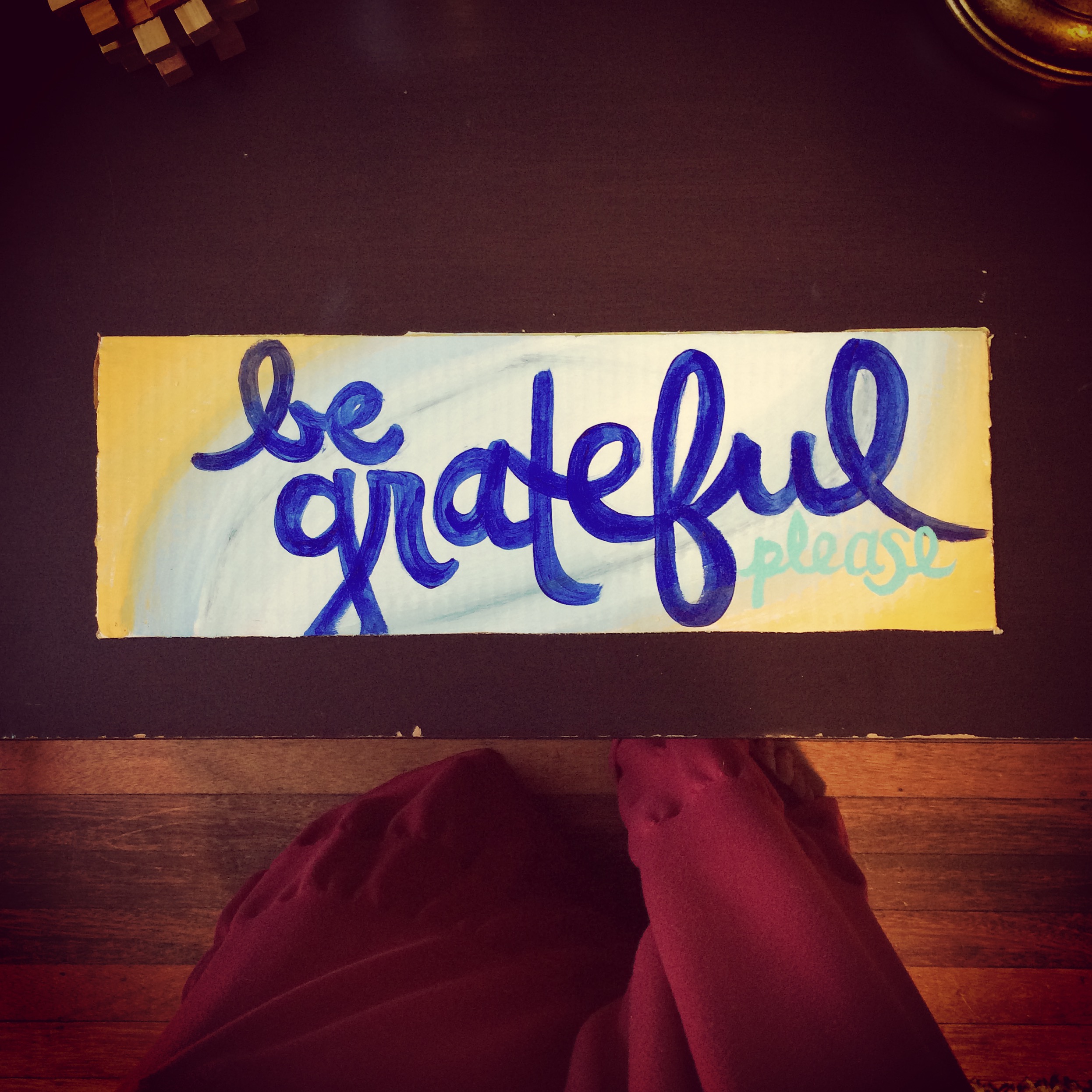 And then few months later my friend purchased her first home. And somewhere in our conversation, she told me there was a main wall in the dining room that she wished she had a big “be grateful” for. I told her I would LOVE for her to hang one of my “be gratefuls” in her first home, and we started talking about sizes. I went to my growing pile of garbage next to my dresser and sent her a picture of one of the black boards, and we decided that that would be perfect.