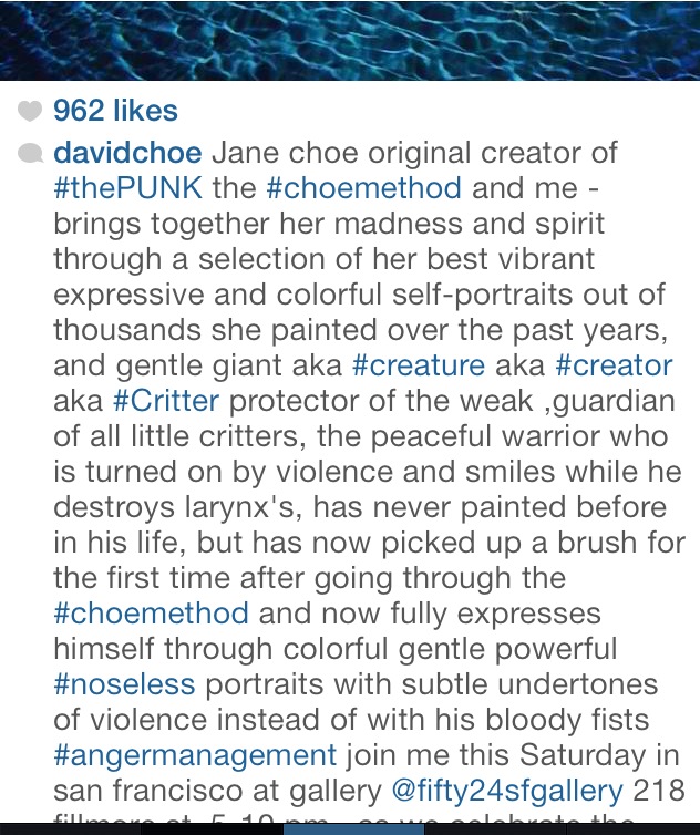 I knew about this art opening, and most of the background behind it, because I follow David Choe on Instagram.